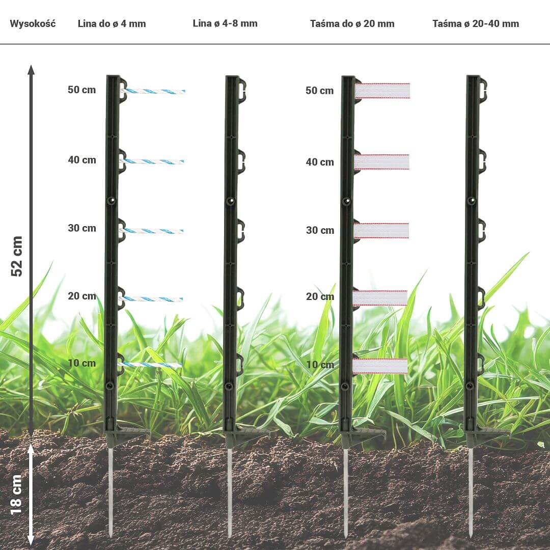 - 20 x Plastikowe słupki, długość 70 cm