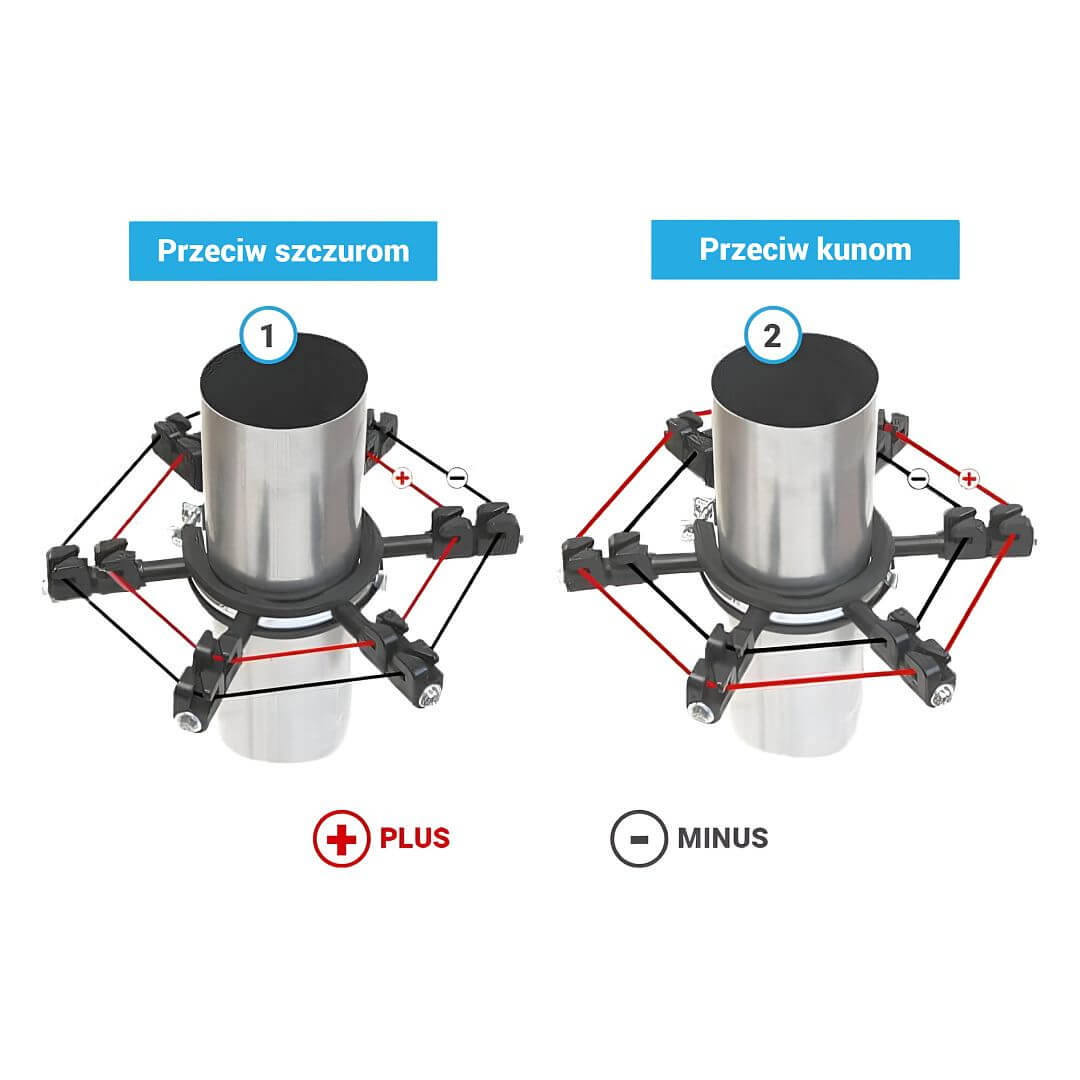 Co oznacza przewód Plus-Minus w ogrodzeniu elektrycznym i do czego jest najczęściej używany? Okablowanie Plus-Minus jest tak zwane bezziemne, w skrócie oznacza to, że zwierzę nie musi mieć kontaktu z ziemią, aby zostać porażonym prądem. Jest najczęściej używany do zwalczania drapieżników i przeciw szkodnikom, takich jak kuny lub łasice, które próbują dostać się do domów, dachów i strychów.