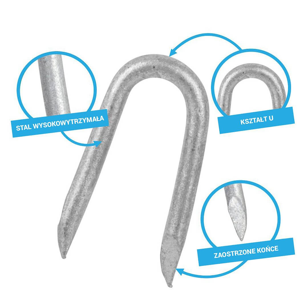 Zszywki ocynkowane do mocowania drutu kolczastego, zszywka do siatki plecionej 2,2 × 25 mm opakowanie 100 g - grubość drutu 2,2 mm, długość 25 mm, ocynkowane.
