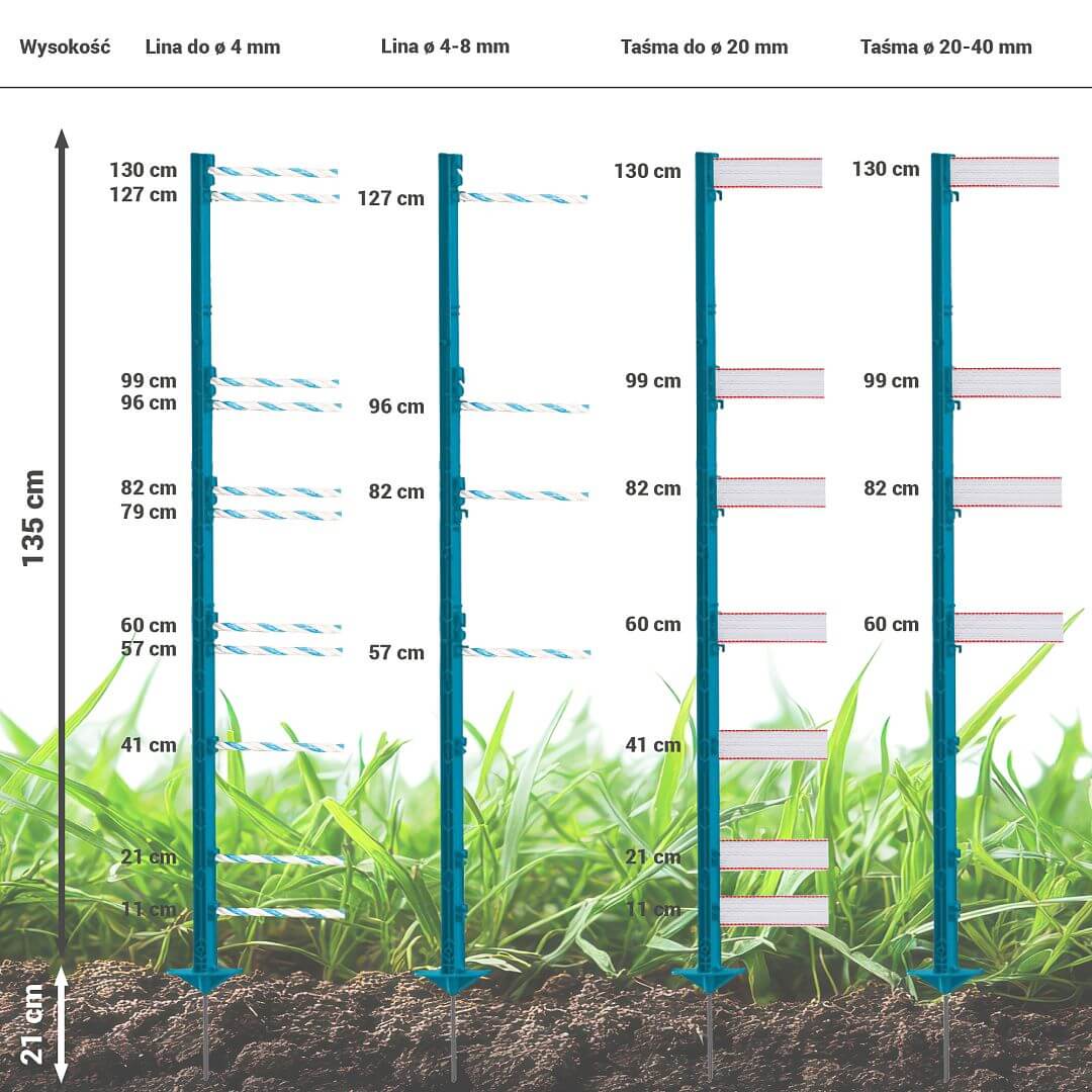 - Całkowita wysokość słupka 156 cm / nad ziemią 135 cm