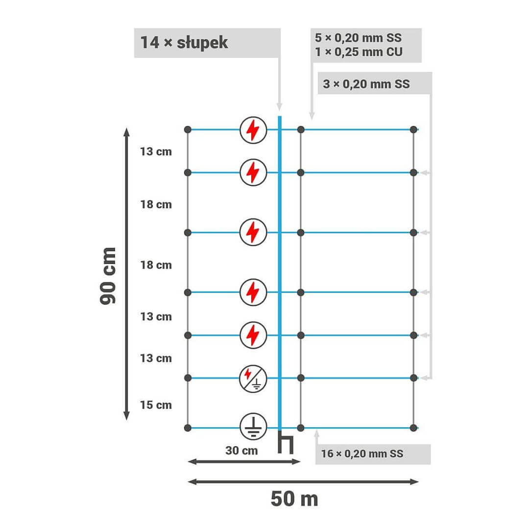 Cechy niebiesko-białej elektrycznej siatki na owce 90 cm: