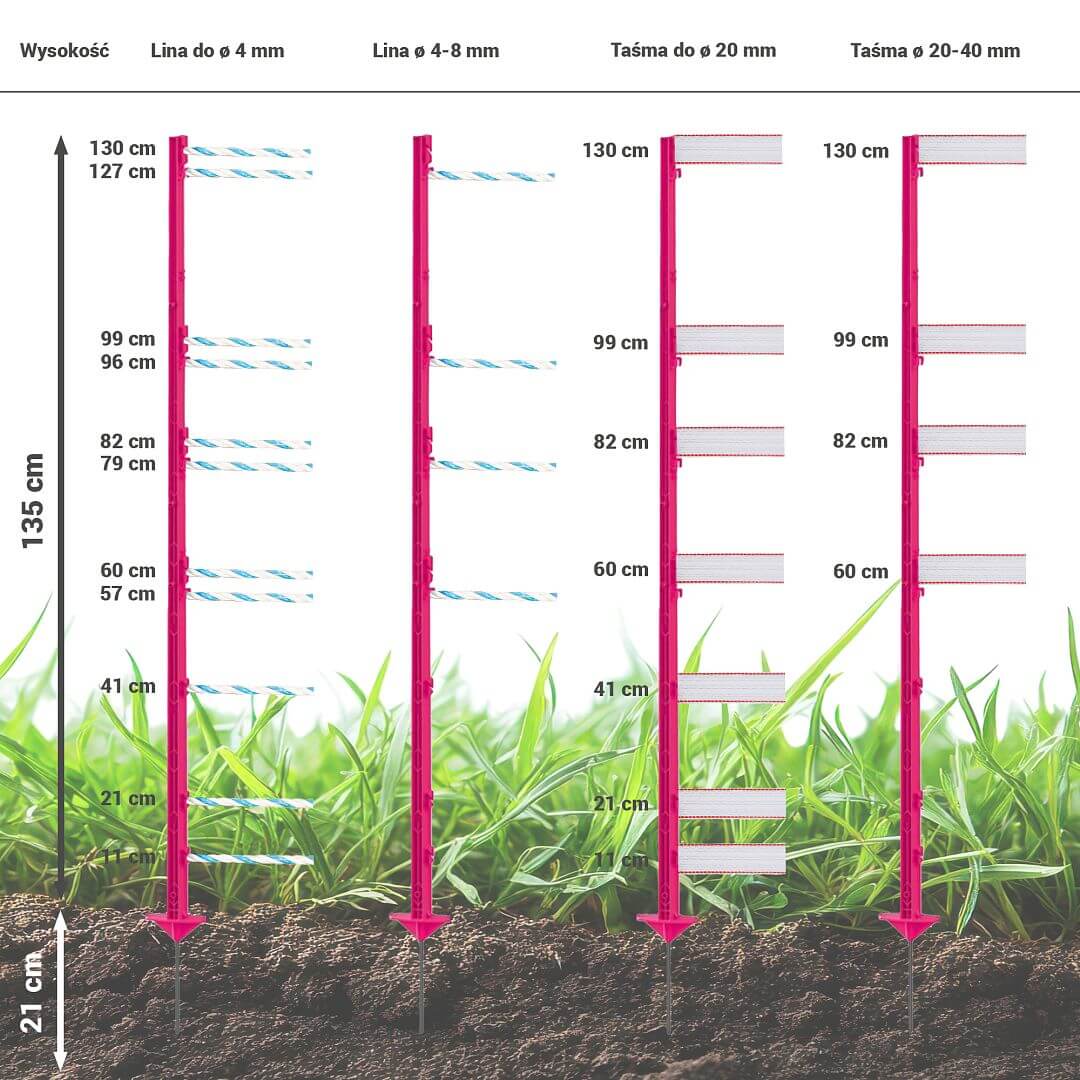 • Całkowita wysokość słupka 156 cm / nad ziemią 135 cm
