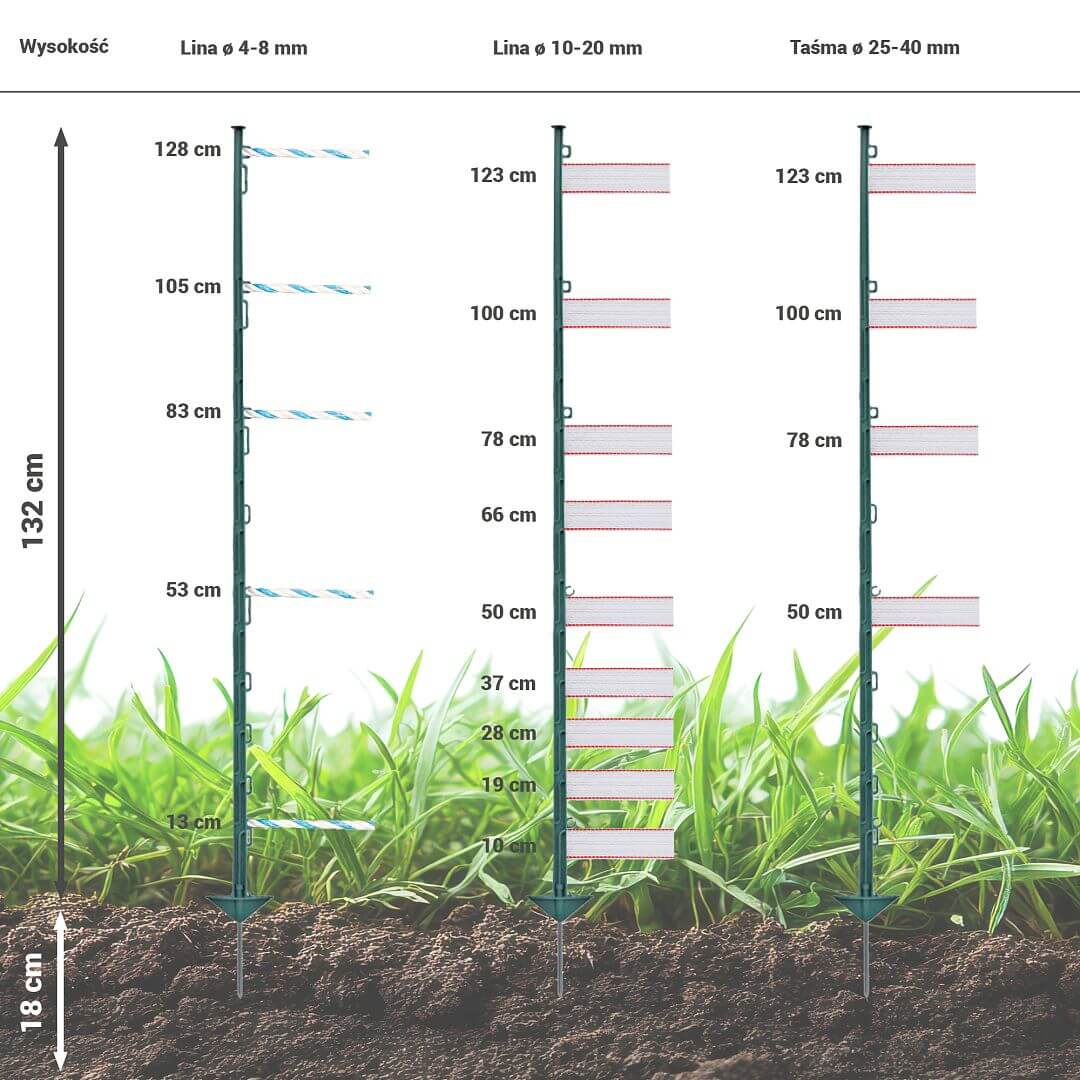• Całkowita wysokość słupka 150 cm / nad ziemią 132 cm