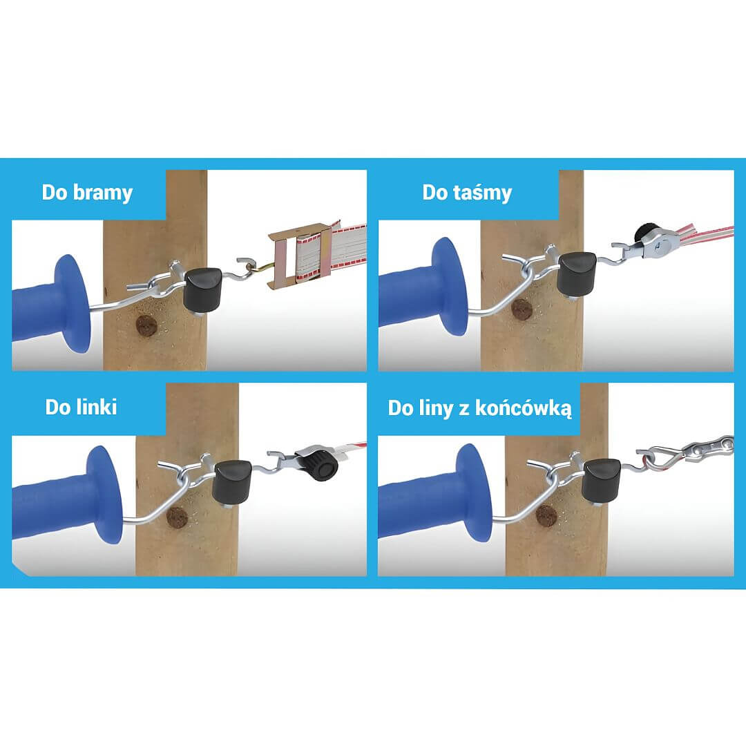 • Do zawieszania uchwytów bramy i przewodów pastucha po obu stronach