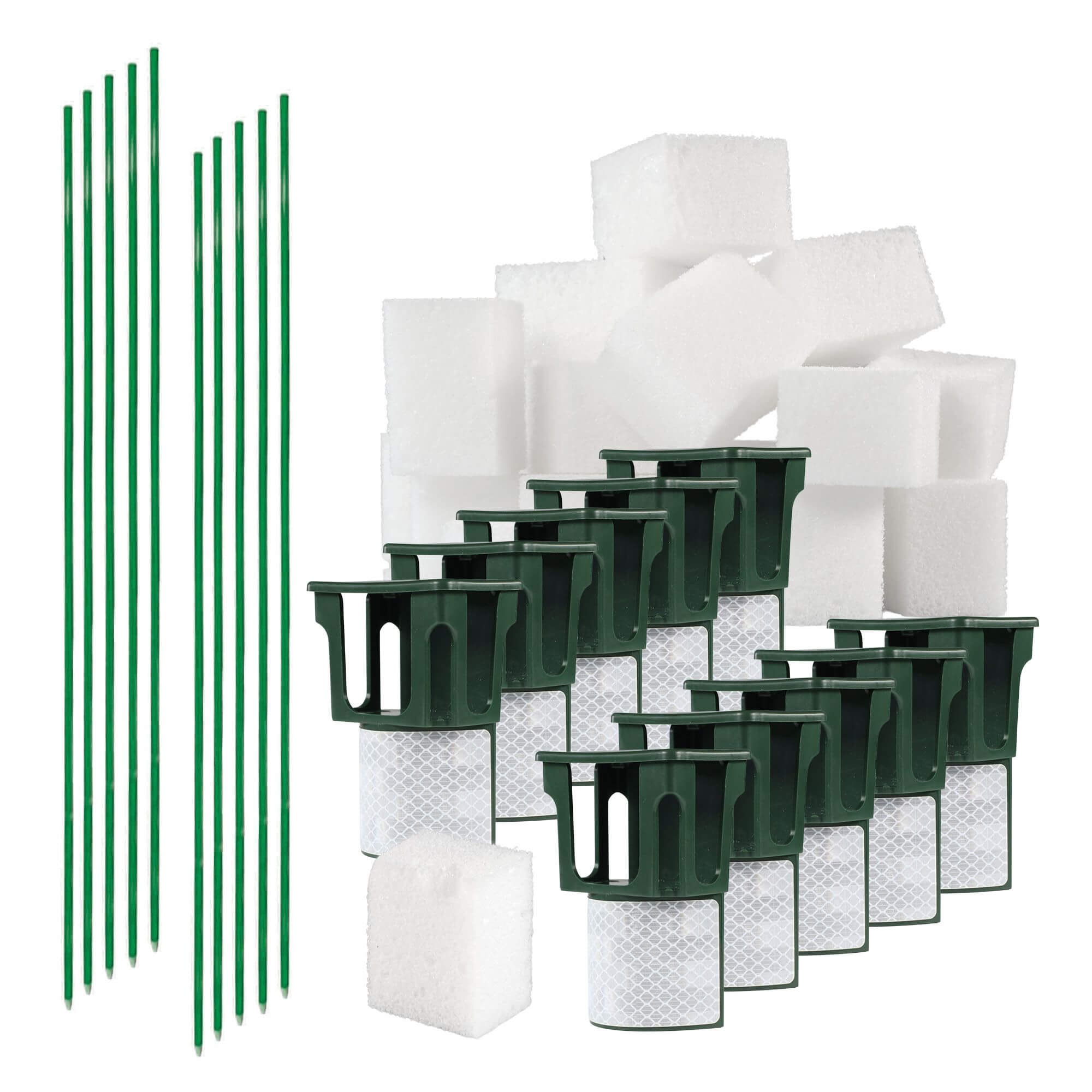 - Odporne na złamania słupki z włókna szklanego w dobrze widocznym zielonym kolorze.