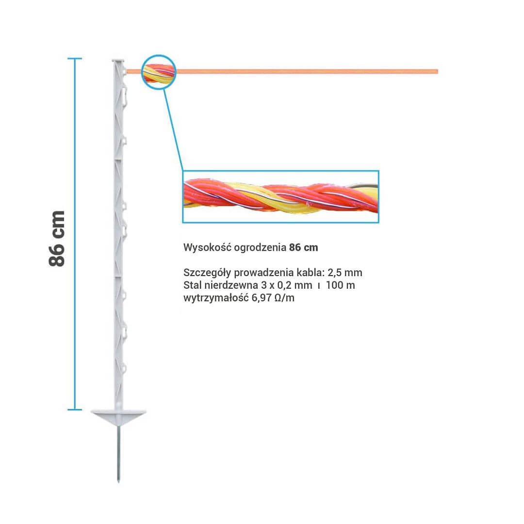 - 10× słupek 105 cm (86 cm nad ziemią), 8 × oczko